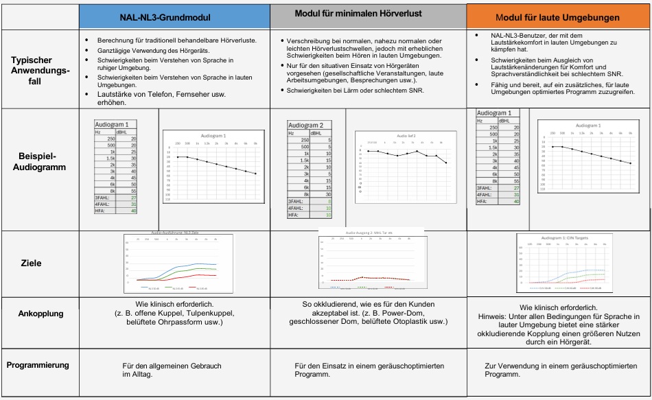 Jedes Hörgerät, das mit NAL-NL3 programmiert ist, kann mit dem Modul „Komfort bei Lärm” programmiert werden. |