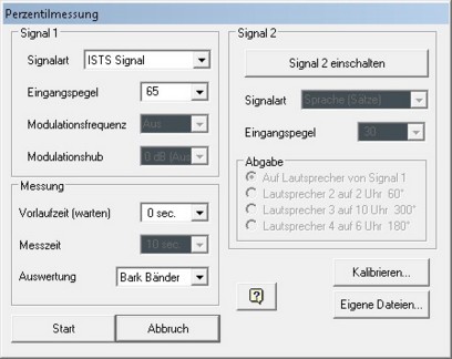 Abb.: Perzentilmessung Messsignalwahl und Pegeleinstellung